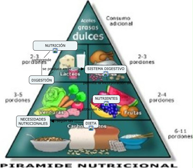 Este Cmap, tiene información relacionada con: betina, NUTRICIÓN comprende DIGESTIÓN, SISTEMA DIGESTIVO permite la incorporación de NUTRIENTES, NUTRIENTES se obtienen de la DIETA, DIGESTIÓN se produce en el SISTEMA DIGESTIVO, DIETA según las NECESIDADES NUTRICIONALES
