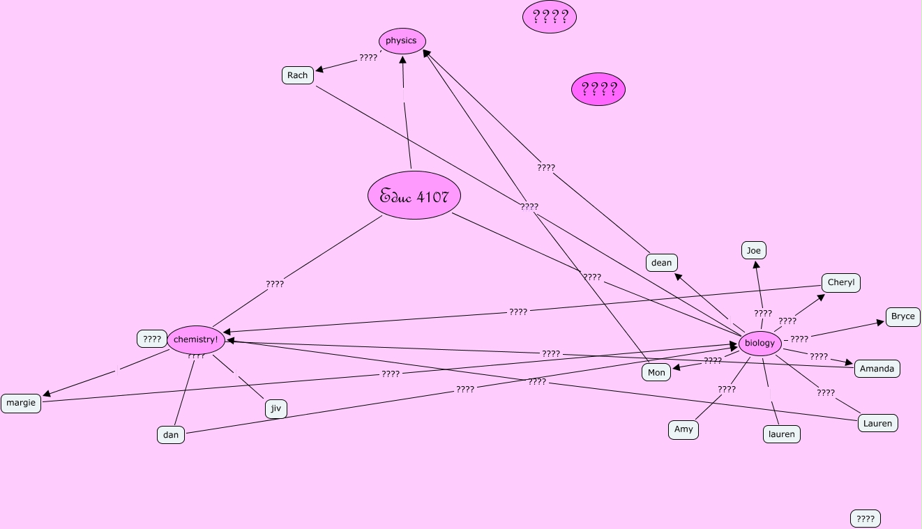 This Concept Map, created with IHMC CmapTools, has information related to: educ-crosslinked, margie ???? biology, biology dean, biology ???? Lauren, dan ???? biology, biology ???? Mon, chemistry! ???? dan, biology ???? Joe, chemistry! margie, Educ 4107 ???? chemistry!, biology ???? Cheryl, Educ 4107 ???? biology, biology ???? Bryce, Amanda ???? ????, dean ???? physics, biology lauren, Rach ???? biology, biology ???? Amy, Educ 4107 physics, chemistry! jiv, Lauren ???? chemistry!