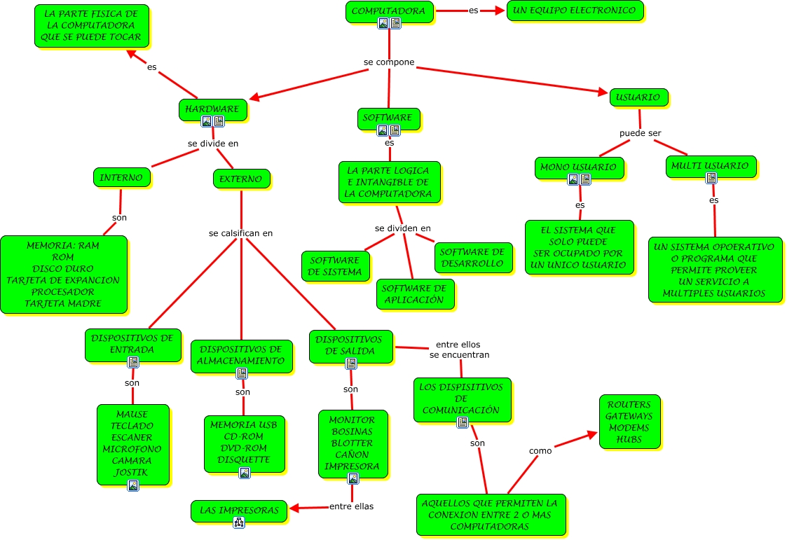 Este Cmap, tiene información relacionada con: CSDIMA, EXTERNO se calsifican en DISPOSITIVOS DE ENTRADA, COMPUTADORA es UN EQUIPO ELECTRONICO, EXTERNO se calsifican en DISPOSITIVOS DE ALMACENAMIENTO, COMPUTADORA se compone HARDWARE, LA PARTE LOGICA E INTANGIBLE DE LA COMPUTADORA se dividen en SOFTWARE DE SISTEMA, SOFTWARE es LA PARTE LOGICA E INTANGIBLE DE LA COMPUTADORA, MONITOR BOSINAS BLOTTER CAÑON IMPRESORA entre ellas LAS IMPRESORAS, INTERNO son MEMORIA: RAM ROM DISCO DURO TARJETA DE EXPANCION PROCESADOR TARJETA MADRE, HARDWARE es LA PARTE FISICA DE LA COMPUTADORA QUE SE PUEDE TOCAR, USUARIO puede ser MULTI USUARIO, MONO USUARIO es EL SISTEMA QUE SOLO PUEDE SER OCUPADO POR UN UNICO USUARIO, COMPUTADORA se compone SOFTWARE, MULTI USUARIO es UN SISTEMA OPOERATIVO O PROGRAMA QUE PERMITE PROVEER UN SERVICIO A MULTIPLES USUARIOS, DISPOSITIVOS DE SALIDA son MONITOR BOSINAS BLOTTER CAÑON IMPRESORA, DISPOSITIVOS DE SALIDA entre ellos se encuentran LOS DISPISITIVOS DE COMUNICACIÓN, USUARIO puede ser MONO USUARIO, LA PARTE LOGICA E INTANGIBLE DE LA COMPUTADORA se dividen en SOFTWARE DE DESARROLLO, AQUELLOS QUE PERMITEN LA CONEXION ENTRE 2 O MAS COMPUTADORAS como ROUTERS GATEWAYS MODEMS HUBS, DISPOSITIVOS DE ENTRADA son MAUSE TECLADO ESCANER MICROFONO CAMARA JOSTIK, LOS DISPISITIVOS DE COMUNICACIÓN son AQUELLOS QUE PERMITEN LA CONEXION ENTRE 2 O MAS COMPUTADORAS