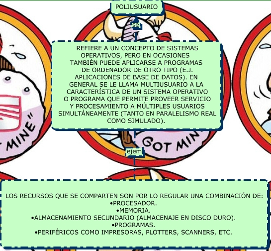Este Cmap, tiene información relacionada con: POLIUSUARIO, REFIERE A UN CONCEPTO DE SISTEMAS OPERATIVOS, PERO EN OCASIONES TAMBIÉN PUEDE APLICARSE A PROGRAMAS DE ORDENADOR DE OTRO TIPO (E.J. APLICACIONES DE BASE DE DATOS). EN GENERAL SE LE LLAMA MULTIUSUARIO A LA CARACTERÍSTICA DE UN SISTEMA OPERATIVO O PROGRAMA QUE PERMITE PROVEER SERVICIO Y PROCESAMIENTO A MÚLTIPLES USUARIOS SIMULTÁNEAMENTE (TANTO EN PARALELISMO REAL COMO SIMULADO). se POLIUSUARIO, REFIERE A UN CONCEPTO DE SISTEMAS OPERATIVOS, PERO EN OCASIONES TAMBIÉN PUEDE APLICARSE A PROGRAMAS DE ORDENADOR DE OTRO TIPO (E.J. APLICACIONES DE BASE DE DATOS). EN GENERAL SE LE LLAMA MULTIUSUARIO A LA CARACTERÍSTICA DE UN SISTEMA OPERATIVO O PROGRAMA QUE PERMITE PROVEER SERVICIO Y PROCESAMIENTO A MÚLTIPLES USUARIOS SIMULTÁNEAMENTE (TANTO EN PARALELISMO REAL COMO SIMULADO). ejem LOS RECURSOS QUE SE COMPARTEN SON POR LO REGULAR UNA COMBINACIÓN DE: • PROCESADOR. • MEMORIA. • ALMACENAMIENTO SECUNDARIO (ALMACENAJE EN DISCO DURO). • PROGRAMAS. • PERIFÉRICOS COMO IMPRESORAS, PLOTTERS, SCANNERS, ETC.