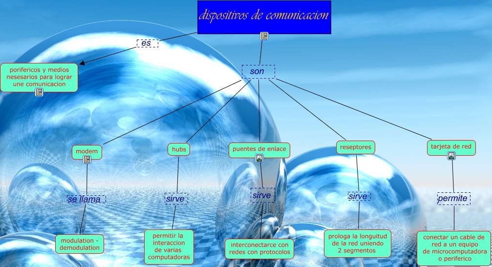 Este Cmap, tiene información relacionada con: mio1, dispositivos de comunicacion son reseptores, hubs sirve permitir la interaccion de varias computadoras, dispositivos de comunicacion es porifericos y medios nesesarios para lograr une comunicacion, reseptores sirve prologa la longuitud de la red uniendo 2 segmentos, modem se llama modulation - demodulation, dispositivos de comunicacion son modem, puentes de enlace sirve interconectarce con redes con protocolos, tarjeta de red permite conectar un cable de red a un equipo de microcomputadora o periferico, dispositivos de comunicacion son puentes de enlace, dispositivos de comunicacion son tarjeta de red, dispositivos de comunicacion son hubs