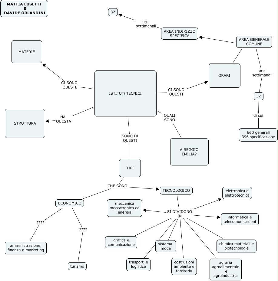Questa Cmap, creata con IHMC CmapTools, contiene informazioni relative a: ISTITUTO TECNISO MATTIA E DAVIDE O GRUPPO 3, TIPI CHE SONO TECNOLOGICO, ORARI ???? AREA GENERALE COMUNE, TECNOLOGICO SI DIVIDONO IN agraria agroalimentale e agroindustria, TECNOLOGICO SI DIVIDONO IN sistema moda, AREA GENERALE COMUNE ore settimanali 32, TECNOLOGICO SI DIVIDONO IN meccanica meccatronica ed energia, ISTITUTi TECNICI HA QUESTA STRUTTURA, ISTITUTi TECNICI QUALI SONO A REGGIO EMILIA?, ISTITUTi TECNICI CI SONO QUESTI ORARI, ECONOMICO ???? amministrazione, finanza e marketing, AREA INDIRIZZO SPECIFICA ore settimanali 32, TECNOLOGICO SI DIVIDONO IN costruzioni ambiente e territorio, ORARI ???? AREA INDIRIZZO SPECIFICA, 32 di cui 660 generali 396 specificazione, TIPI CHE SONO ECONOMICO, ISTITUTi TECNICI CI SONO QUESTE MATERIE, ISTITUTi TECNICI SONO DI QUESTI TIPI, TECNOLOGICO SI DIVIDONO IN elettronica e elettrotecnica, TECNOLOGICO SI DIVIDONO IN trasporti e logistica, TECNOLOGICO SI DIVIDONO IN grafica e comunicazione
