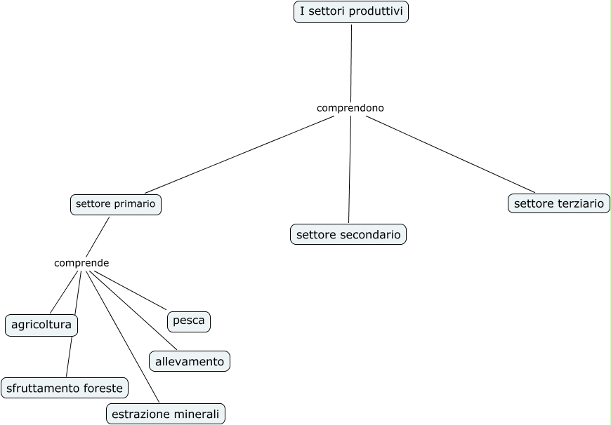 Questa Cmap, creata con IHMC CmapTools, contiene informazioni relative a: mappa settori salvatore rinaldi, settore primario comprende allevamento, settore primario comprende pesca, settore primario comprende estrazione minerali, settore primario comprende agricoltura, I settori produttivi comprendono settore secondario, settore primario comprende sfruttamento foreste, I settori produttivi comprendono settore primario, I settori produttivi comprendono settore terziario