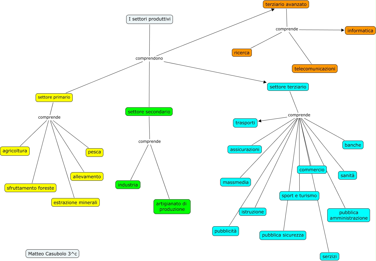 Questa Cmap, creata con IHMC CmapTools, contiene informazioni relative a: mappa settori matteo casubolo, settore terziario comprende pubblicità, I settori produttivi comprendono settore terziario, terziario avanzato comprende informatica, terziario avanzato comprende ricerca, settore terziario comprende pubblica sicurezza, settore terziario comprende pubblica amministrazione, settore primario comprende sfruttamento foreste, settore terziario comprende banche, settore terziario comprende istruzione, settore primario comprende estrazione minerali, I settori produttivi comprendono settore secondario, I settori produttivi comprendono terziario avanzato, terziario avanzato comprende telecomunicazioni, settore terziario comprende sanità, settore terziario comprende assicurazioni, settore primario comprende allevamento, settore primario comprende agricoltura, settore primario comprende pesca, I settori produttivi comprendono settore primario, settore terziario comprende trasporti