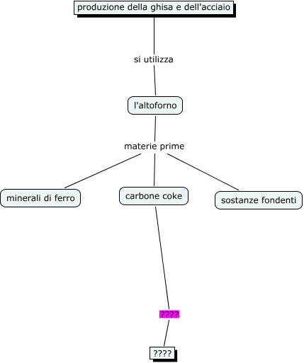 Questa Cmap, creata con IHMC CmapTools, contiene informazioni relative a: mappa ghisagloria corradini!!!!!!!!!!, carbone coke ???? ????, l'altoforno materie prime minerali di ferro, l'altoforno materie prime carbone coke, l'altoforno materie prime sostanze fondenti, produzione della ghisa e dell'acciaio si utilizza l'altoforno