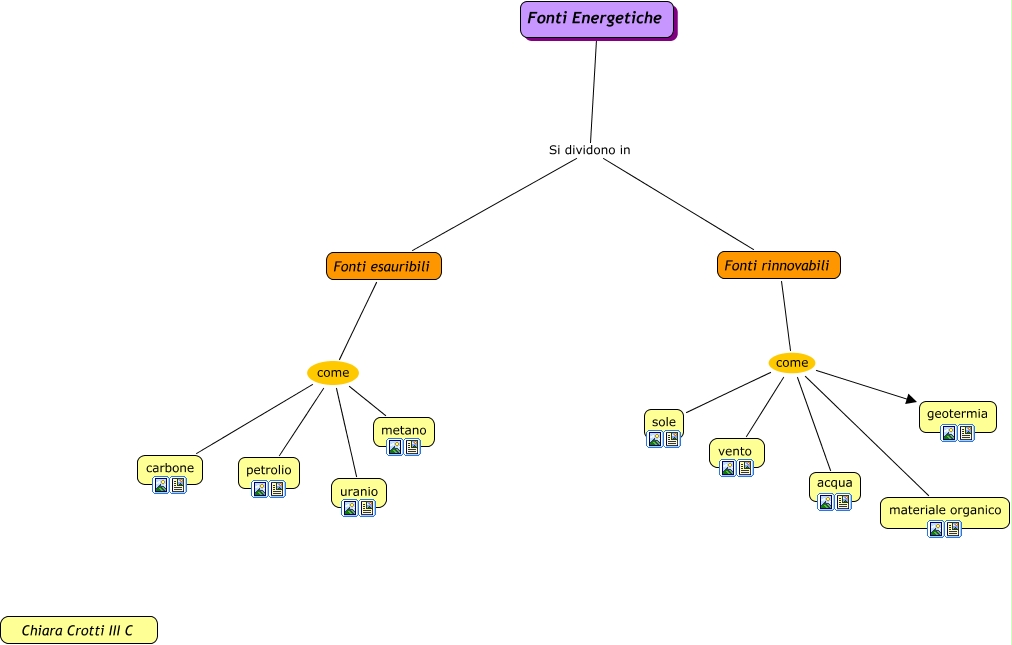 Questa Cmap, creata con IHMC CmapTools, contiene informazioni relative a: Mappa Energie Chiara Crotti, Fonti Energetiche Si dividono in Fonti esauribili, Fonti esauribili come carbone, Fonti rinnovabili come materiale organico, Fonti Energetiche Si dividono in Fonti rinnovabili, Fonti esauribili come metano, Fonti rinnovabili come acqua, Fonti esauribili come uranio, Fonti rinnovabili come vento, Fonti esauribili come petrolio, Fonti rinnovabili come geotermia, Fonti rinnovabili come sole