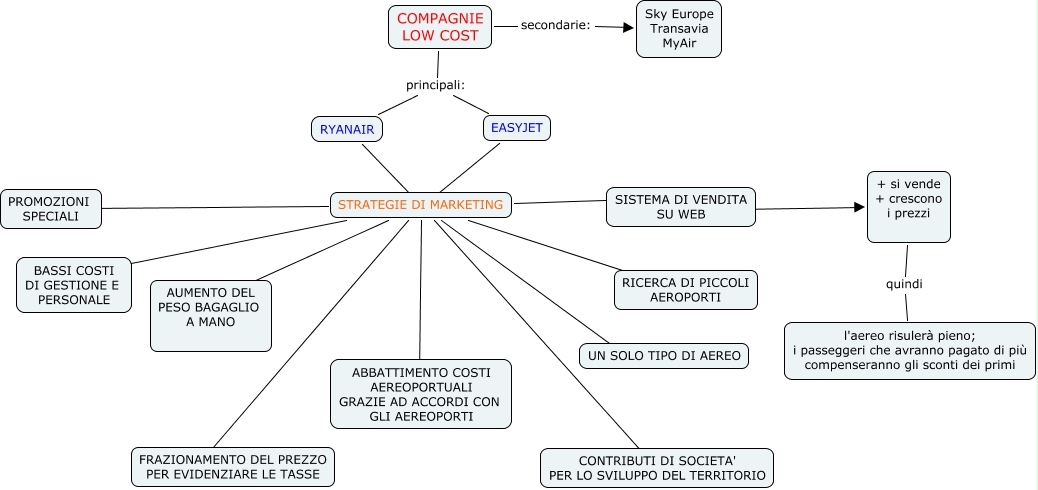 Questa Cmap, creata con IHMC CmapTools, contiene informazioni relative a: trasporto aereo, STRATEGIE DI MARKETING ???? RICERCA DI PICCOLI AEROPORTI, STRATEGIE DI MARKETING ???? BASSI COSTI DI GESTIONE E PERSONALE, COMPAGNIE LOW COST principali: RYANAIR, STRATEGIE DI MARKETING ???? AUMENTO DEL PESO BAGAGLIO A MANO, STRATEGIE DI MARKETING ???? PROMOZIONI SPECIALI, COMPAGNIE LOW COST principali: EASYJET, STRATEGIE DI MARKETING ???? UN SOLO TIPO DI AEREO, RYANAIR ???? STRATEGIE DI MARKETING, STRATEGIE DI MARKETING ???? FRAZIONAMENTO DEL PREZZO PER EVIDENZIARE LE TASSE, STRATEGIE DI MARKETING ???? ABBATTIMENTO COSTI AEREOPORTUALI GRAZIE AD ACCORDI CON GLI AEREOPORTI, STRATEGIE DI MARKETING ???? CONTRIBUTI DI SOCIETA' PER LO SVILUPPO DEL TERRITORIO, STRATEGIE DI MARKETING ???? SISTEMA DI VENDITA SU WEB, SISTEMA DI VENDITA SU WEB ???? + si vende + crescono i prezzi, EASYJET ???? STRATEGIE DI MARKETING, + si vende + crescono i prezzi quindi l'aereo risulerà pieno; i passeggeri che avranno pagato di più compenseranno gli sconti dei primi, COMPAGNIE LOW COST secondarie: Sky Europe Transavia MyAir