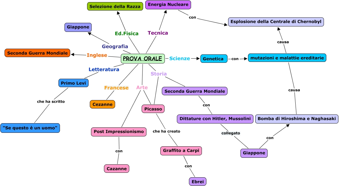 Questa Cmap, creata con IHMC CmapTools, contiene informazioni relative a: Mappa esame Alessia, Primo Levi che ha scritto "Se questo è un uomo", PROVA ORALE Storia Picasso, PROVA ORALE Storia Seconda Guerra Mondiale, PROVA ORALE Inglese Seconda Guerra Mondiale, Picasso che ha creato Graffito a Carpi, mutazioni e malattie ereditarie causa Bomba di Hiroshima e Naghasaki, Graffito a Carpi con Ebrei, mutazioni e malattie ereditarie causa Esplosione della Centrale di Chernobyl, Giappone con Bomba di Hiroshima e Naghasaki, PROVA ORALE Ed.Fisica Selezione della Razza, Genetica con mutazioni e malattie ereditarie, PROVA ORALE Letteratura Primo Levi, PROVA ORALE Francese Cezanne, PROVA ORALE Arte Post Impressionismo, PROVA ORALE Scienze Genetica, PROVA ORALE Arte Picasso, PROVA ORALE Geografia Giappone, PROVA ORALE Tecnica Energia Nucleare, Seconda Guerra Mondiale con Dittature con Hitler, Mussolini, Dittature con Hitler, Mussolini collegato Giappone