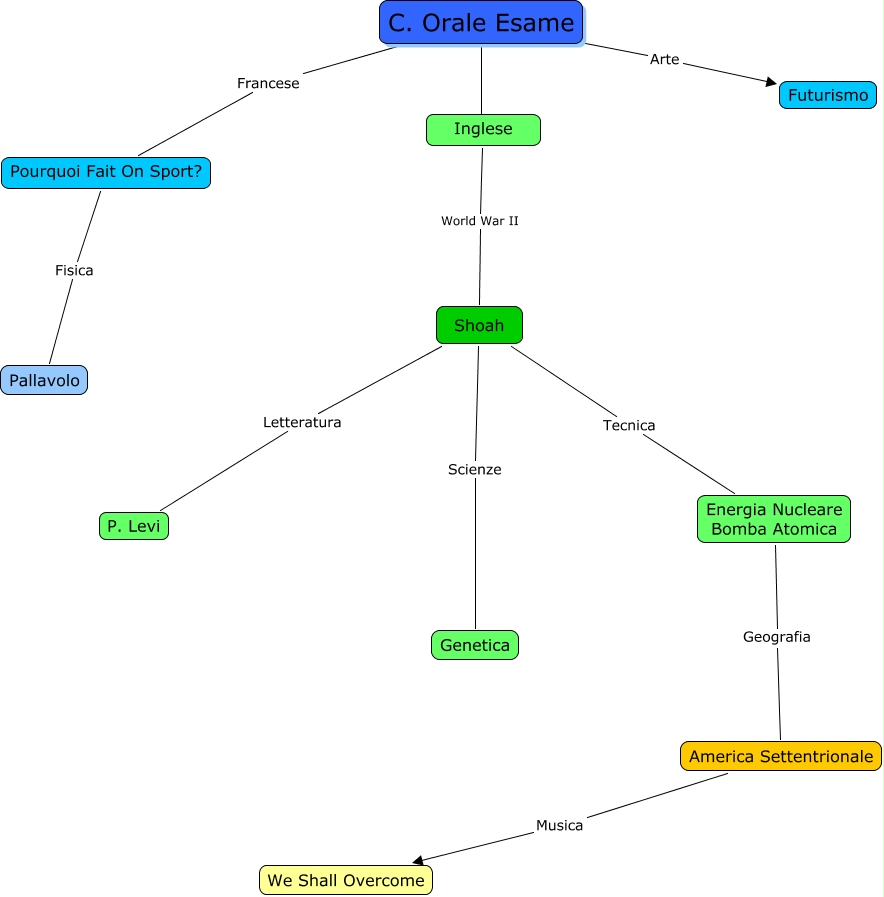 Questa Cmap, creata con IHMC CmapTools, contiene informazioni relative a: Mappa Esame Chiara Crotti, Pourquoi Fait On Sport? Fisica Pallavolo, C. Orale Esame Francese Pourquoi Fait On Sport?, C. Orale Esame Arte Futurismo, Inglese World War II Shoah, Energia Nucleare Bomba Atomica Geografia America Settentrionale, Shoah Scienze Genetica, C. Orale Esame ???? Inglese, Shoah Letteratura P. Levi, America Settentrionale Musica We Shall Overcome, Shoah Tecnica Energia Nucleare Bomba Atomica