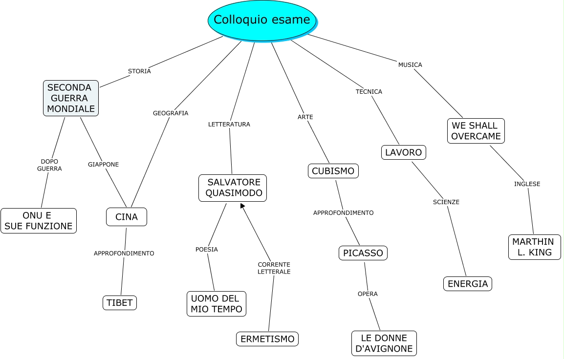 Questa Cmap, creata con IHMC CmapTools, contiene informazioni relative a: MAPPA ESAME FU TINGTING, Colloquio esame MUSICA WE SHALL OVERCAME, PICASSO OPERA LE DONNE D'AVIGNONE, SALVATORE QUASIMODO POESIA UOMO DEL MIO TEMPO, Colloquio esame TECNICA LAVORO, LAVORO SCIENZE ENERGIA, ERMETISMO CORRENTE LETTERALE SALVATORE QUASIMODO, WE SHALL OVERCAME INGLESE MARTHIN L. KING, Colloquio esame ARTE CUBISMO, CUBISMO APPROFONDIMENTO PICASSO, Colloquio esame GEOGRAFIA CINA, SECONDA GUERRA MONDIALE GIAPPONE CINA, Colloquio esame LETTERATURA SALVATORE QUASIMODO, Colloquio esame STORIA SECONDA GUERRA MONDIALE, SECONDA GUERRA MONDIALE DOPO GUERRA ONU E SUE FUNZIONE, CINA APPROFONDIMENTO TIBET