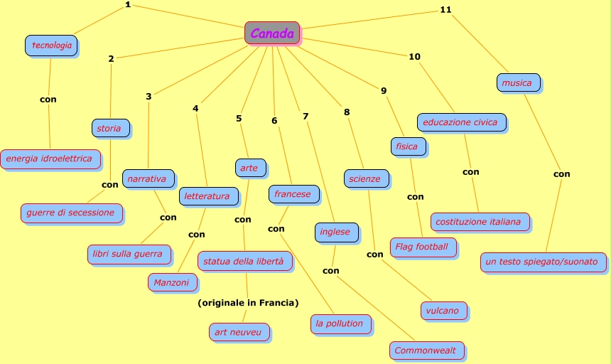 Questa Cmap, creata con IHMC CmapTools, contiene informazioni relative a: mappa esame veronica pecchini, Canada 3 narrativa, Canada 4 letteratura, Canada 8 scienze, Canada 7 inglese, Canada 2 storia, letteratura con Manzoni, inglese con Commonwealt, narrativa con libri sulla guerra, Canada 10 educazione civica, storia con guerre di secessione, educazione civica con costituzione italiana, Canada 11 musica, Canada 1 tecnologia, Canada 5 arte, statua della libertà (originale in Francia) art neuveu, Canada 6 francese, fisica con Flag football, scienze con vulcano, tecnologia con energia idroelettrica, arte con statua della libertà