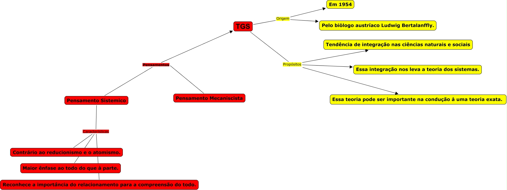 Esse mapa conceitual, produzido no IHMC CmapTools, tem a informação relacionada a: Mapa TGS, TGS Origem Pelo biólogo austríaco Ludwig Bertalanffly., Pensamento Sistemico Características Reconhece a importância do relacionamento para a compreensão do todo., TGS Propósitos Tendência de integração nas ciências naturais e sociais, Pensamento Mecaniscista Pensamentos TGS, Pensamento Sistemico Características Contrário ao reducionismo e o atomismo., TGS Propósitos Essa teoria pode ser importante na condução à uma teoria exata., TGS Origem Em 1954, Pensamento Sistemico Pensamentos TGS, Pensamento Sistemico Características Maior ênfase ao todo do que à parte., TGS Propósitos Essa integração nos leva a teoria dos sistemas.