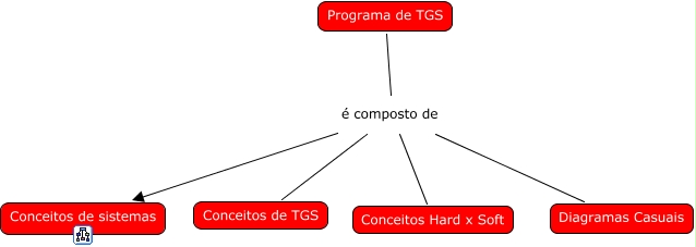 Esse mapa conceitual, produzido no IHMC CmapTools, tem a informação relacionada a: Programa TSG, Programa de TGS é composto de Conceitos de sistemas, Programa de TGS é composto de Conceitos Hard x Soft, Programa de TGS é composto de Conceitos de TGS, Programa de TGS é composto de Diagramas Casuais