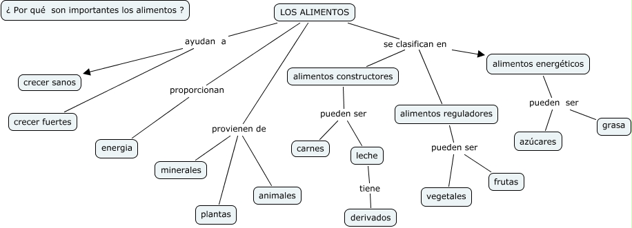 Este Cmap, tiene información relacionada con: los alimentos, alimentos reguladores pueden ser frutas, LOS ALIMENTOS ayudan a crecer fuertes, LOS ALIMENTOS provienen de plantas, LOS ALIMENTOS se clasifican en alimentos constructores, LOS ALIMENTOS se clasifican en alimentos reguladores, LOS ALIMENTOS provienen de animales, alimentos reguladores pueden ser vegetales, alimentos energéticos pueden ser azúcares, LOS ALIMENTOS proporcionan energia, leche tiene derivados, alimentos constructores pueden ser leche, LOS ALIMENTOS ayudan a crecer sanos, alimentos constructores pueden ser carnes, LOS ALIMENTOS provienen de minerales, LOS ALIMENTOS se clasifican en alimentos energéticos, alimentos energéticos pueden ser grasa