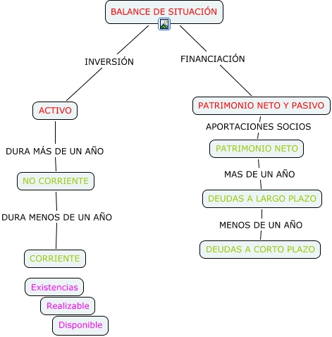 Este mapa conceptual tiene información relacionada a: Balance masas patrimoniales, ACTIVO DURA MÁS DE UN AÑO NO CORRIENTE, NO CORRIENTE DURA MENOS DE UN AÑO CORRIENTE, DEUDAS A LARGO PLAZO MENOS DE UN AÑO DEUDAS A CORTO PLAZO, BALANCE DE SITUACIÓN INVERSIÓN ACTIVO, PATRIMONIO NETO MAS DE UN AÑO DEUDAS A LARGO PLAZO, PATRIMONIO NETO Y PASIVO APORTACIONES SOCIOS PATRIMONIO NETO, BALANCE DE SITUACIÓN FINANCIACIÓN PATRIMONIO NETO Y PASIVO