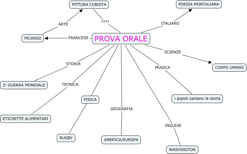Questa Cmap, creata con IHMC CmapTools, contiene informazioni relative a: MAPPA ESAME GIADA, PROVA ORALE INGLESE WASHINGTON, PROVA ORALE FRANCESE PICASSO, PROVA ORALE TECNICA ETICHETTE ALIMENTARI, PROVA ORALE STORIA 2° GUERRA MONDIALE, PROVA ORALE MUSICA i popoli cantano la storia, PICASSO ARTE PITTURA CUBISTA, PITTURA CUBISTA ???? PROVA ORALE, PROVA ORALE ITALIANO POESIA MONTALIANA, PROVA ORALE GEOGRAFIA AMERICA/EUROPA, PROVA ORALE SCIENZE CORPO UMANO, PROVA ORALE ???? RUGBY