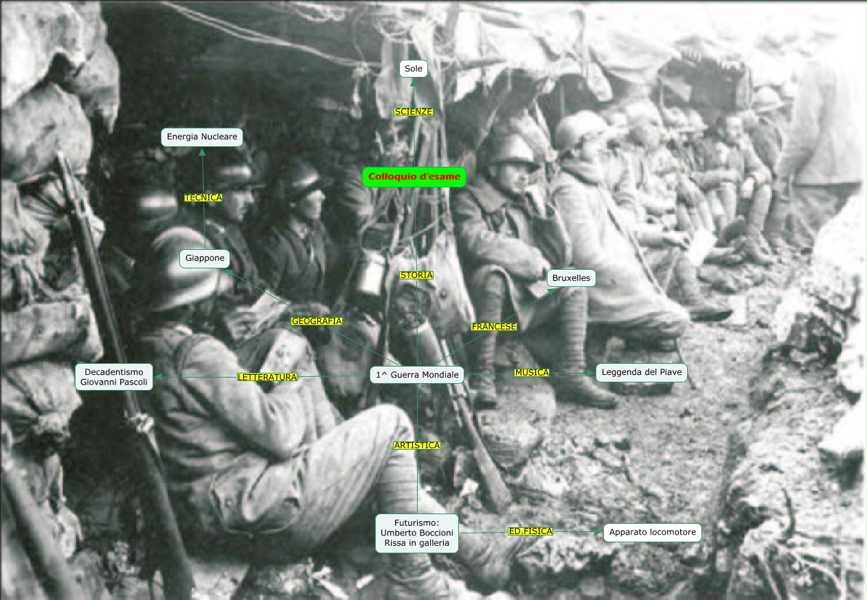 Questa Cmap, creata con IHMC CmapTools, contiene informazioni relative a: mappa esame Nicola, Colloquio d'esame STORIA 1^ Guerra Mondiale, 1^ Guerra Mondiale LETTERATURA Decadentismo Giovanni Pascoli, Futurismo: Umberto Boccioni Rissa in galleria ED.FISICA Apparato locomotore, Colloquio d'esame SCIENZE Sole, Giappone TECNICA Energia Nucleare, 1^ Guerra Mondiale FRANCESE Bruxelles, 1^ Guerra Mondiale ARTISTICA Futurismo: Umberto Boccioni Rissa in galleria, 1^ Guerra Mondiale MUSICA Leggenda del Piave, 1^ Guerra Mondiale GEOGRAFIA Giappone