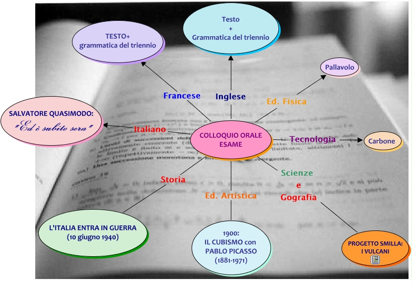 Questa Cmap, creata con IHMC CmapTools, contiene informazioni relative a: Senza titolo, COLLOQUIO ORALE ESAME Tecnologia Carbone, COLLOQUIO ORALE ESAME Ed. Artistica 1900: IL CUBISMO con PABLO PICASSO (1881-1971), COLLOQUIO ORALE ESAME Francese TESTO+ grammatica del triennio, COLLOQUIO ORALE ESAME Ed. Fisica Pallavolo, COLLOQUIO ORALE ESAME Scienze e Gografia PROGETTO SMILLA: I VULCANI, COLLOQUIO ORALE ESAME Italiano SALVATORE QUASIMODO: "Ed è subito sera", COLLOQUIO ORALE ESAME Storia L'ITALIA ENTRA IN GUERRA (10 giugno 1940), COLLOQUIO ORALE ESAME Inglese Testo + Grammatica del triennio