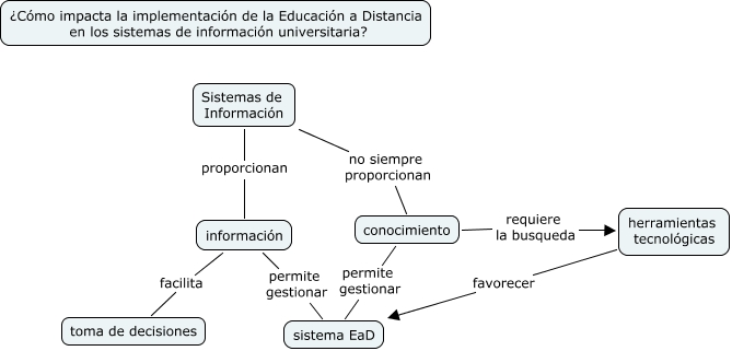 Este Cmap, tiene información relacionada con: BainME_MC_Proyecto_v0, conocimiento requiere la busqueda herramientas tecnológicas, información permite gestionar sistema EaD, herramientas tecnológicas favorecer sistema EaD, conocimiento permite gestionar sistema EaD, Sistemas de Información proporcionan información, Sistemas de Información no siempre proporcionan conocimiento, información facilita toma de decisiones