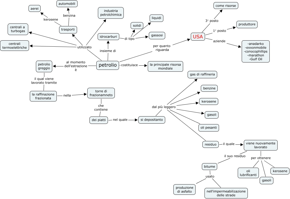 Questa Cmap, creata con IHMC CmapTools, contiene informazioni relative a: Mappa tecnica di Claudia, USA aziende -anadarko -exxonmobile -conocophillips -marathon -Gulf Oil, viene nuovamente lavorato per ottenere kerosene, petrolio utilizzato industria petrolchimica, la raffinazione frazionata nella torre di frazionamneto, trasporti benzina automobili, torre di frazionamneto che contiene dei piatti, petrolio utilizzato centrali a turbogas, idrocarburi di tipo gassosi, petrolio utilizzato trasporti, si depositanto dal più leggero kerosene, si depositanto dal più leggero residuo, viene nuovamente lavorato per ottenere gasoli, petrolio utilizzato centrali termoelettriche, petrolio al momento dell'estrazione è petrolio greggio, dei piatti nel quale si depositanto, USA 3° posto come risorse, viene nuovamente lavorato per ottenere oli lubrificanti, idrocarburi di tipo liquidi, viene nuovamente lavorato il suo residuo bitume, bitume usato produzione di asfalto