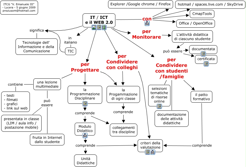 Questa Cmap, creata con IHMC CmapTools, contiene informazioni relative a: Home Page, una lezione multimediale contiene - testi - filmati - grafici - link sul web, Modulo Didattico comprende criteri della valutazione, la Programmazione Disciplinare comprende collegamenti tra discipline, la Programmazione Disciplinare comprende Modulo Didattico, IT / ICT e il WEB 2.0 per Progettare una lezione multimediale, L'attività didattica di ciascuno studente può essere documentata, una lezione multimediale può essere fruita in Internet dallo studente, TIC significa Tecnologie dell' Informazione e della Comunicazione, IT / ICT e il WEB 2.0 con Explorer /Google chrome / Firefox, Modulo Didattico comprende Unità Didattiche, IT / ICT e il WEB 2.0 per Condividere con colleghi criteri della valutazione, IT / ICT e il WEB 2.0 con hotmail / spaces.live.com / SkyDrive, IT / ICT e il WEB 2.0 per Condividere con colleghi la Progammazione di ogni classe, L'attività didattica di ciascuno studente può essere certificata, IT / ICT e il WEB 2.0 con Office / OpenOffice, una lezione multimediale può essere presentata in classe (LIM / aula info / postazione mobile), IT / ICT e il WEB 2.0 per Condividere con studenti /famiglie il patto formativo, il patto formativo comprende criteri della valutazione, IT / ICT e il WEB 2.0 con CmapTools, IT / ICT e il WEB 2.0 per Progettare la Progammazione di ogni classe