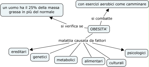 Questa Cmap, creata con IHMC CmapTools, contiene informazioni relative a: ed fisica ile, OBESITA' si combatte con esercizi aerobici come camminare, OBESITA' malattia causata da fattori ereditari, OBESITA' malattia causata da fattori culturali, OBESITA' malattia causata da fattori psicologici, OBESITA' malattia causata da fattori metabolici, OBESITA' malattia causata da fattori genetici, OBESITA' si verifica se un uomo ha il 25% della massa grassa in più del normale, OBESITA' malattia causata da fattori alimentari