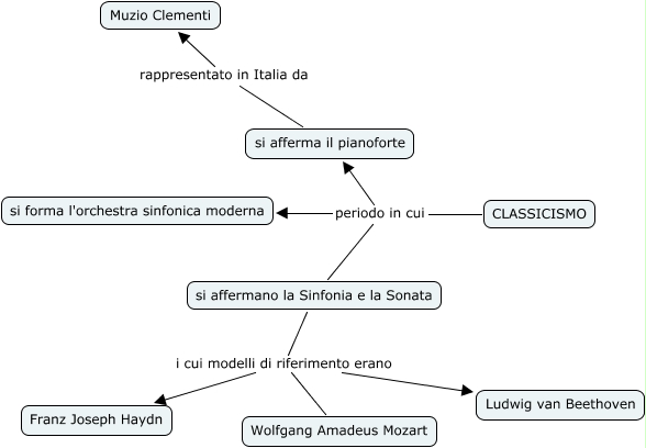 Questa Cmap, creata con IHMC CmapTools, contiene informazioni relative a: musica ile, si affermano la Sinfonia e la Sonata i cui modelli di riferimento erano Ludwig van Beethoven, CLASSICISMO periodo in cui si affermano la Sinfonia e la Sonata, si afferma il pianoforte rappresentato in Italia da Muzio Clementi, si affermano la Sinfonia e la Sonata i cui modelli di riferimento erano Wolfgang Amadeus Mozart, CLASSICISMO periodo in cui si afferma il pianoforte, CLASSICISMO periodo in cui si forma l'orchestra sinfonica moderna, si affermano la Sinfonia e la Sonata i cui modelli di riferimento erano Franz Joseph Haydn