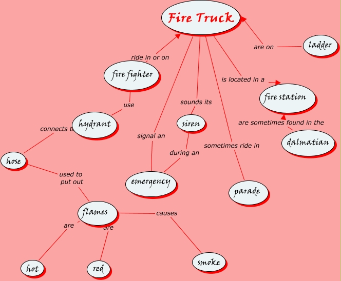 This Concept Map, created with IHMC CmapTools, has information related to: Fire Truck, flames are hot, flames causes smoke, dalmatian are sometimes found in the fire station, Fire Truck sometimes ride in parade, flames are red, hose connects to hydrant, fire fighter ride in or on Fire Truck, Fire Truck is located in a fire station, Fire Truck signal an emergency, siren during an emergency, fire fighter use hydrant, ladder are on Fire Truck, hose used to put out flames, Fire Truck sounds its siren