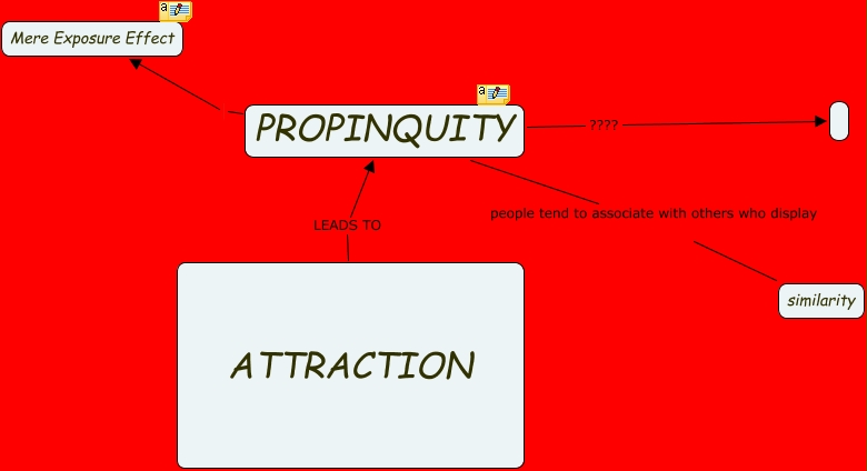 This Concept Map, created with IHMC CmapTools, has information related to: attraction, PROPINQUITY ????, PROPINQUITY Mere Exposure Effect, PROPINQUITY people tend to associate with others who display similarity, ATTRACTION LEADS TO PROPINQUITY