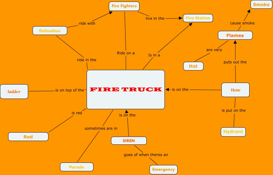 This Concept Map, created with IHMC CmapTools, has information related to: Fire Truck, Hose puts out the Flames, ladder is on top of the FIRE TRUCK, Fire Fighters live in the Fire Station, SIREN is on the FIRE TRUCK, Flames are very Hot, SIREN goes of when theres an Emergency, Fire Fighters Ride on a FIRE TRUCK, Flames cause smoke Smoke, FIRE TRUCK sometimes are in Parade, Hose is put on the Hydrant, FIRE TRUCK is red Red, Hose is on the FIRE TRUCK, Dalmation ride with Fire Fighters, Dalmation ride in the FIRE TRUCK, FIRE TRUCK Is in a Fire Station