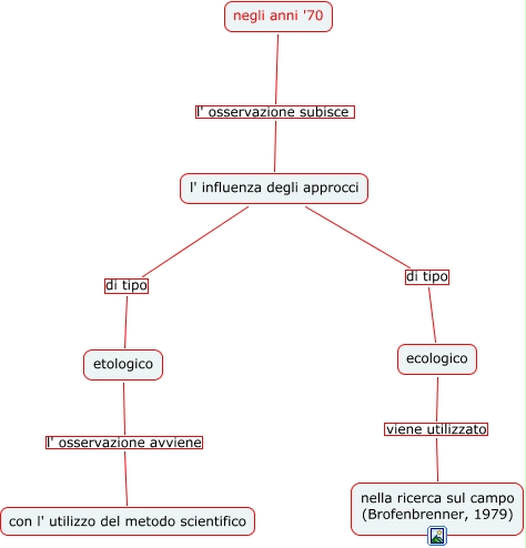 Questa Cmap, creata con IHMC CmapTools, contiene informazioni relative a: caratteristiche anni '70, ecologico viene utilizzato nella ricerca sul campo (Brofenbrenner, 1979), etologico l' osservazione avviene con l' utilizzo del metodo scientifico, l' influenza degli approcci di tipo ecologico, l' influenza degli approcci di tipo etologico, l' influenza degli approcci l' osservazione subisce negli anni '70
