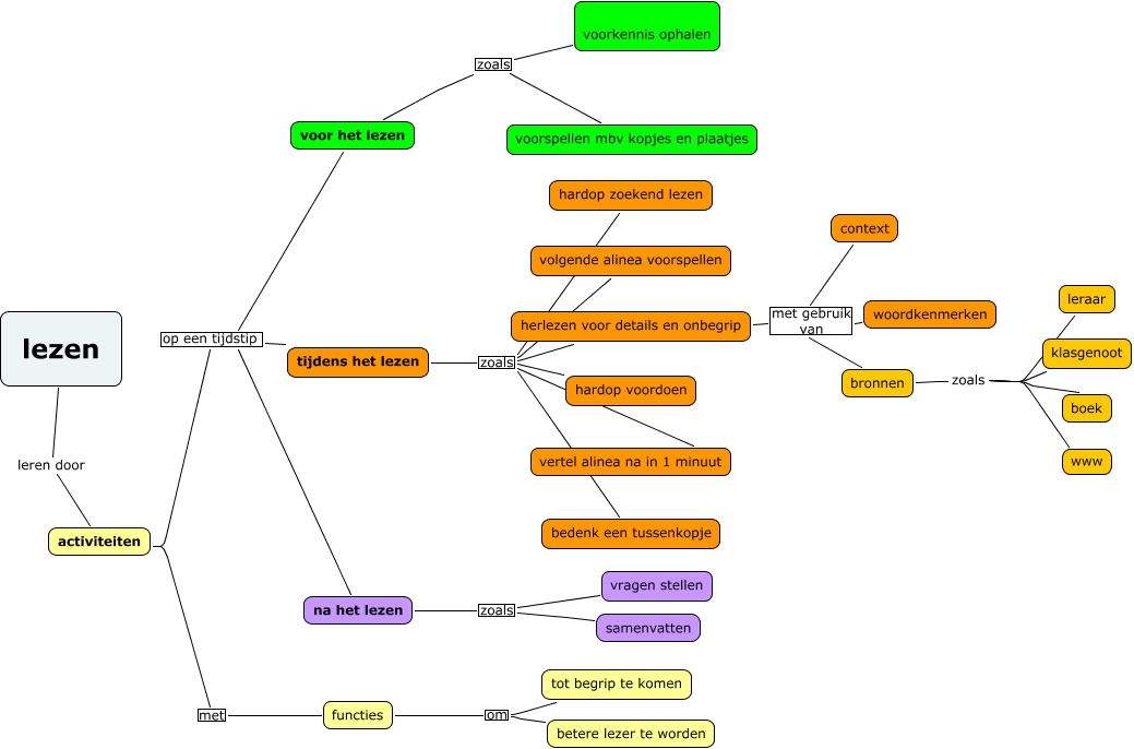 Deze Concept Map heeft informatie gerelateerd aan: lezen gibbons, voor het lezen zoals voorkennis ophalen, herlezen voor details en onbegrip met gebruik van bronnen, lezen leren door activiteiten, functies om tot begrip te komen, bronnen zoals www, activiteiten op een tijdstip voor het lezen, activiteiten op een tijdstip tijdens het lezen, activiteiten met functies, activiteiten op een tijdstip na het lezen, tijdens het lezen zoals herlezen voor details en onbegrip, na het lezen zoals vragen stellen, tijdens het lezen zoals hardop zoekend lezen, tijdens het lezen zoals hardop voordoen, bronnen zoals leraar, voor het lezen zoals voorspellen mbv kopjes en plaatjes, bronnen zoals klasgenoot, herlezen voor details en onbegrip met gebruik van context, tijdens het lezen zoals bedenk een tussenkopje, tijdens het lezen zoals volgende alinea voorspellen, functies om betere lezer te worden
