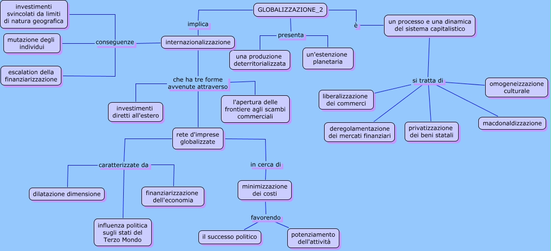 Questa Cmap, creata con IHMC CmapTools, contiene informazioni relative a: globalizzazione 2 Coppola-Adelfi-5BL-2009-2010-ITAS-V Emanuele II-, internazionalizzazione conseguenze mutazione degli individui, un processo e una dinamica del sistema capitalistico si tratta di macdonaldizzazione, un processo e una dinamica del sistema capitalistico si tratta di omogeneizzazione culturale, GLOBALIZZAZIONE_2 implica internazionalizzazione, GLOBALIZZAZIONE_2 presenta un'estenzione planetaria, rete d'imprese globalizzate caratterizzate da finanziarizzazione dell'economia, rete d'imprese globalizzate caratterizzate da dilatazione dimensione, un processo e una dinamica del sistema capitalistico si tratta di deregolamentazione dei mercati finanziari, rete d'imprese globalizzate in cerca di minimizzazione dei costi, internazionalizzazione che ha tre forme avvenute attraverso rete d'imprese globalizzate, internazionalizzazione conseguenze investimenti svincolati da limiti di natura geografica, un processo e una dinamica del sistema capitalistico si tratta di privatizzazione dei beni statali, internazionalizzazione che ha tre forme avvenute attraverso l'apertura delle frontiere agli scambi commerciali, un processo e una dinamica del sistema capitalistico si tratta di liberalizzazione dei commerci, internazionalizzazione conseguenze escalation della finanziarizzazione, minimizzazione dei costi favorendo il successo politico, internazionalizzazione che ha tre forme avvenute attraverso investimenti diretti all'estero, minimizzazione dei costi favorendo potenziamento dell'attività, GLOBALIZZAZIONE_2 presenta una produzione deterritorializzata, GLOBALIZZAZIONE_2 è un processo e una dinamica del sistema capitalistico