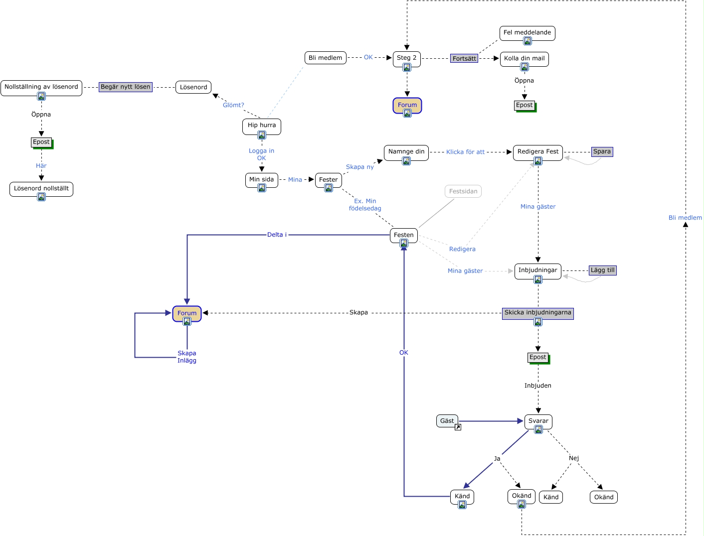 Den här kartan innehåller information om: Gäst, Nollställning av lösenord Öppna Epost, Spara Redigera Fest, Skicka inbjudningarna Skapa Forum, Svarar Ja Känd, Begär nytt lösen Nollställning av lösenord, Svarar Nej Okänd, Epost Här Lösenord nollställt, Steg 2 Forum, Festen Festsidan, Okänd Bli medlem Steg 2, Epost Inbjuden Svarar, Fortsätt Fel meddelande, Festen Delta i Forum, Fester Skapa ny Namnge din, Festen Mina gäster Inbjudningar, Lösenord Begär nytt lösen, Steg 2 Fortsätt, Inbjudningar Skicka inbjudningarna, Gäst Svarar, Skicka inbjudningarna Epost