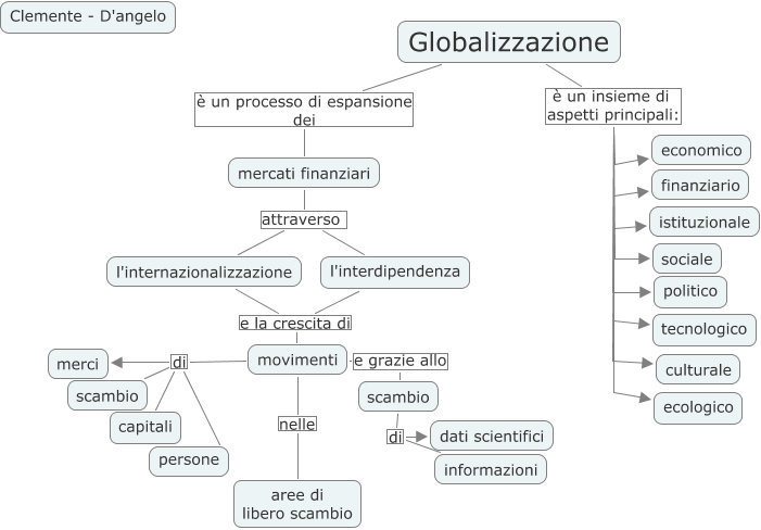 Questa Cmap, creata con IHMC CmapTools, contiene informazioni relative a: ClementeD'angeloGlobalizzazione1, scambio di informazioni, movimenti nelle aree di libero scambio, movimenti di persone, Globalizzazione è un insieme di aspetti principali: sociale, movimenti e grazie allo scambio, Globalizzazione è un processo di espansione dei mercati finanziari, Globalizzazione è un insieme di aspetti principali: finanziario, Globalizzazione è un insieme di aspetti principali: istituzionale, scambio di dati scientifici, mercati finanziari attraverso l'internazionalizzazione, Globalizzazione è un insieme di aspetti principali: politico, Globalizzazione è un insieme di aspetti principali: tecnologico, Globalizzazione è un insieme di aspetti principali: economico, l'internazionalizzazione e la crescita di movimenti, movimenti di capitali, mercati finanziari attraverso l'interdipendenza, Globalizzazione è un insieme di aspetti principali: culturale, movimenti di scambio, Globalizzazione è un insieme di aspetti principali: ecologico, movimenti di merci