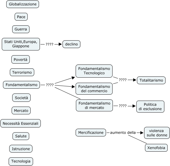 Questa Cmap, creata con IHMC CmapTools, contiene informazioni relative a: ClementeD'angelo-DossierGlob, Fondamentalismo ???? Fondamentalismo Tecnologico, Mercificazione aumento della Xenofobia, Stati Uniti,Europa, Giappone ???? declino, Mercificazione aumento della violenza sulle donne, Fondamentalismo ???? Fondamentalismo del commercio, Fondamentalismo del commercio ???? Totalitarismo, Fondamentalismo ???? Fondamentalismo di mercato, Fondamentalismo di mercato ???? Politica di esclusione, Fondamentalismo Tecnologico ???? Totalitarismo