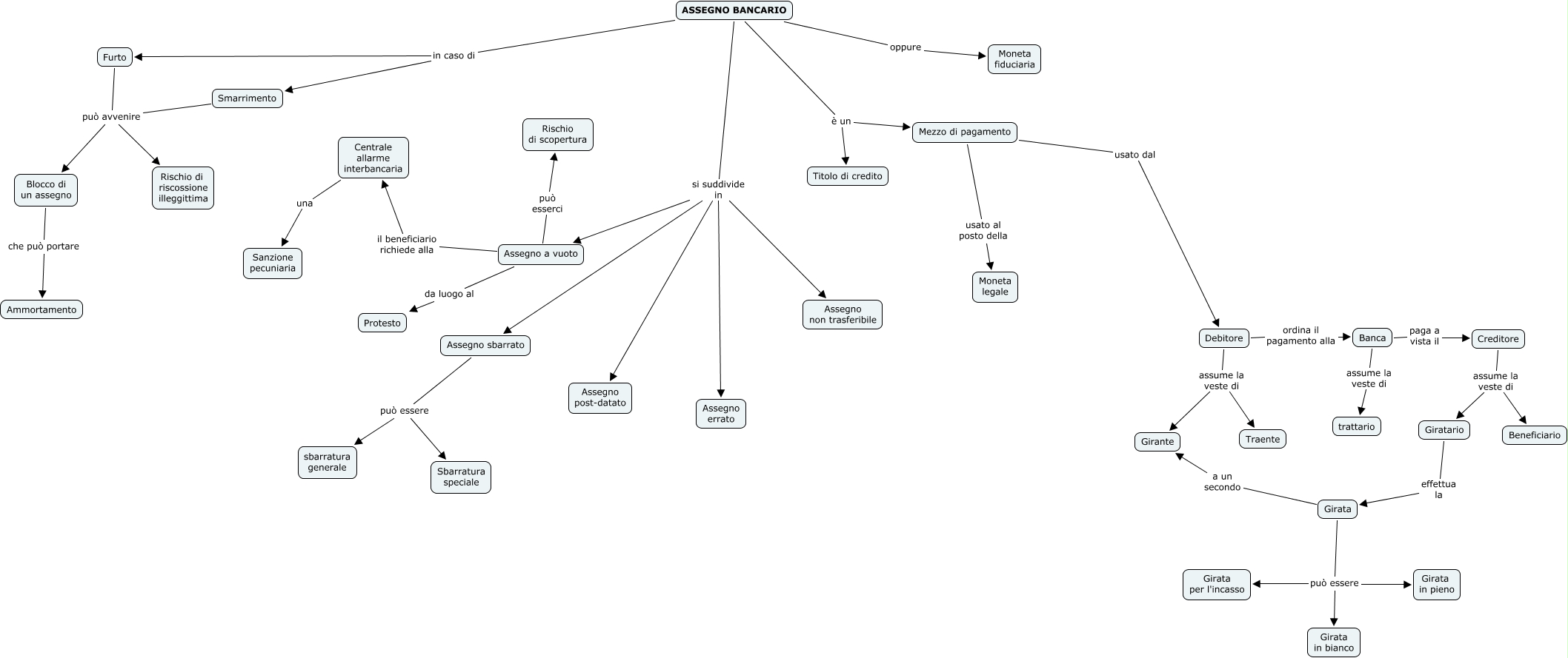 Questa Cmap, creata con IHMC CmapTools, contiene informazioni relative a: ASSEGNO-1-Galgani Sgroi Di giorgio 3BL, ASSEGNO BANCARIO si suddivide in Assegno a vuoto, Giratario effettua la Girata, ASSEGNO BANCARIO si suddivide in Assegno non trasferibile, Banca paga a vista il Creditore, Assegno sbarrato può essere Sbarratura speciale, Assegno a vuoto può esserci Rischio di scopertura, Furto può avvenire Blocco di un assegno, Girata può essere Girata in pieno, ASSEGNO BANCARIO si suddivide in Assegno sbarrato, Blocco di un assegno che può portare Ammortamento, Girata può essere Girata in bianco, Assegno sbarrato può essere sbarratura generale, Centrale allarme interbancaria una Sanzione pecuniaria, ASSEGNO BANCARIO si suddivide in Assegno post-datato, ASSEGNO BANCARIO è un Mezzo di pagamento, ASSEGNO BANCARIO in caso di Furto, Debitore assume la veste di Girante, Debitore ordina il pagamento alla Banca, Assegno a vuoto il beneficiario richiede alla Centrale allarme interbancaria, ASSEGNO BANCARIO è un Titolo di credito
