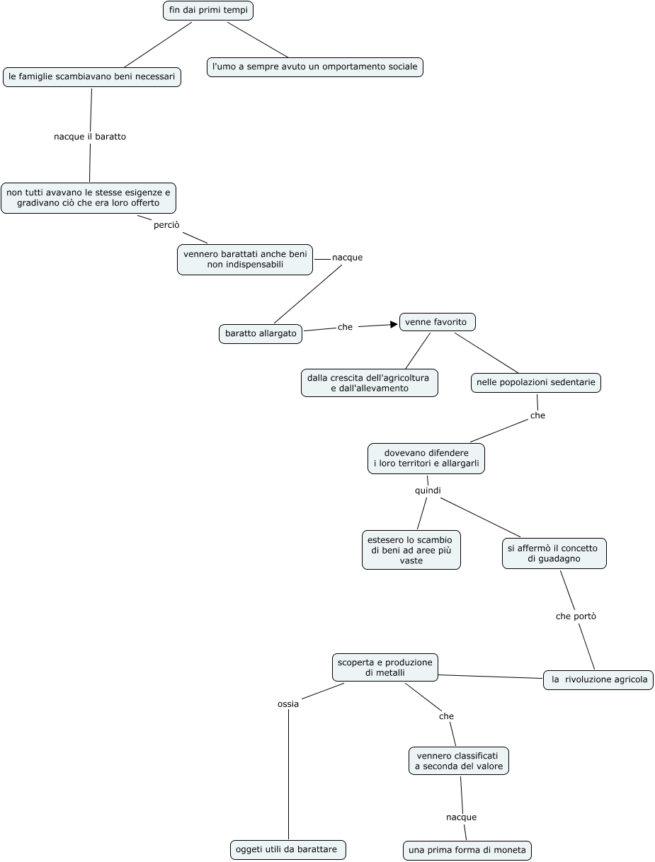 Questa Cmap, creata con IHMC CmapTools, contiene informazioni relative a: marty&ale, dovevano difendere i loro territori e allargarli quindi estesero lo scambio di beni ad aree più vaste, baratto allargato che venne favorito, scoperta e produzione di metalli che vennero classificati a seconda del valore, nelle popolazioni sedentarie che dovevano difendere i loro territori e allargarli, venne favorito ???? nelle popolazioni sedentarie, fin dai primi tempi ???? le famiglie scambiavano beni necessari, vennero classificati a seconda del valore nacque una prima forma di moneta, si affermò il concetto di guadagno che portò la rivoluzione agricola, dovevano difendere i loro territori e allargarli quindi si affermò il concetto di guadagno, la rivoluzione agricola ???? scoperta e produzione di metalli, non tutti avavano le stesse esigenze e gradivano ciò che era loro offerto perciò vennero barattati anche beni non indispensabili, scoperta e produzione di metalli ossia oggeti utili da barattare, fin dai primi tempi ???? l'umo a sempre avuto un omportamento sociale, vennero barattati anche beni non indispensabili nacque baratto allargato, le famiglie scambiavano beni necessari nacque il baratto non tutti avavano le stesse esigenze e gradivano ciò che era loro offerto, venne favorito ???? dalla crescita dell'agricoltura e dall'allevamento