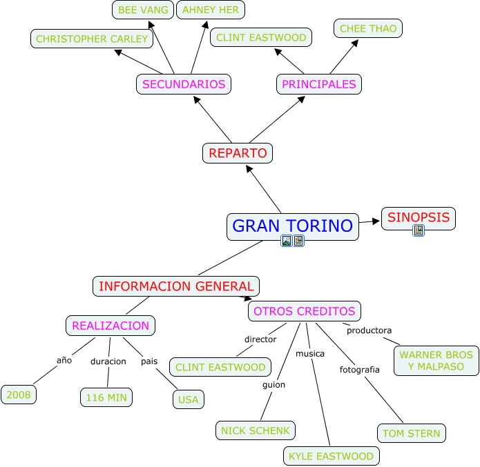 Este Cmap, tiene información relacionada con: GRAN TORINO, PRINCIPALES ???? CLINT EASTWOOD, SECUNDARIOS ???? CHRISTOPHER CARLEY, REPARTO ???? SECUNDARIOS, REPARTO ???? PRINCIPALES, SECUNDARIOS ???? AHNEY HER, OTROS CREDITOS guion NICK SCHENK, OTROS CREDITOS director CLINT EASTWOOD, REALIZACION duracion 116 MIN, GRAN TORINO ???? SINOPSIS, REALIZACION pais USA, OTROS CREDITOS musica KYLE EASTWOOD, REALIZACION año 2008, SECUNDARIOS ???? BEE VANG, OTROS CREDITOS fotografia TOM STERN, GRAN TORINO ???? REPARTO, PRINCIPALES ???? CHEE THAO, GRAN TORINO ???? INFORMACION GENERAL, INFORMACION GENERAL ???? REALIZACION, OTROS CREDITOS productora WARNER BROS Y MALPASO, INFORMACION GENERAL ???? OTROS CREDITOS