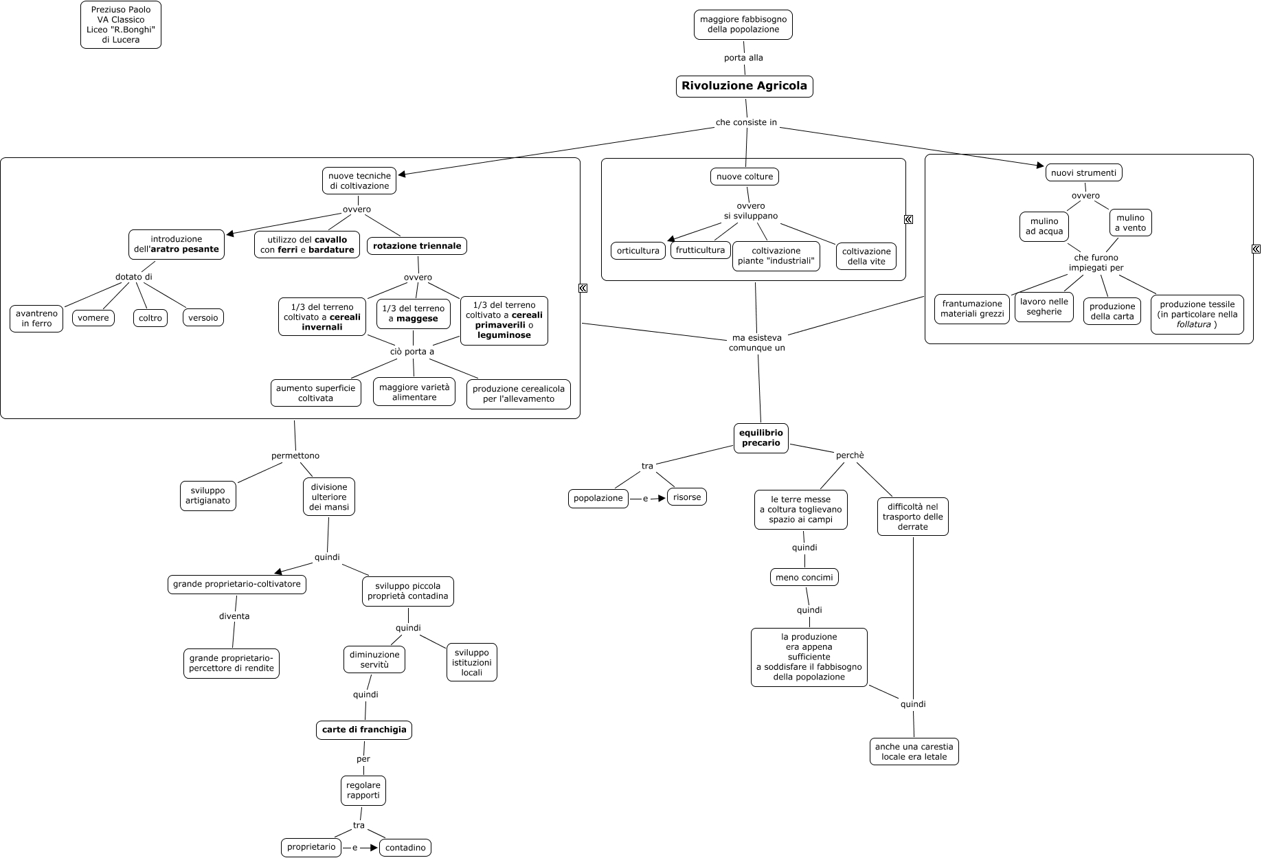 Questa Cmap, creata con IHMC CmapTools, contiene informazioni relative a: Rivoluzione Agricola del X secolo, 1/3 del terreno coltivato a cereali primaverili o leguminose ciò porta a produzione cerealicola per l'allevamento, rotazione triennale ovvero 1/3 del terreno coltivato a cereali primaverili o leguminose, mulino ad acqua che furono impiegati per lavoro nelle segherie, divisione ulteriore dei mansi quindi sviluppo piccola proprietà contadina, 1/3 del terreno coltivato a cereali primaverili o leguminose ciò porta a maggiore varietà alimentare, mulino a vento che furono impiegati per produzione tessile (in particolare nella follatura), nuove tecniche di coltivazione permettono sviluppo artigianato, mulino a vento che furono impiegati per frantumazione materiali grezzi, nuove colture ovvero si sviluppano orticultura, rotazione triennale ovvero 1/3 del terreno coltivato a cereali invernali, introduzione dell'aratro pesante dotato di vomere, 1/3 del terreno a maggese ciò porta a aumento superficie coltivata, difficoltà nel trasporto delle derrate quindi anche una carestia locale era letale, nuovi strumenti ovvero mulino a vento, mulino ad acqua che furono impiegati per produzione della carta, nuove colture ovvero si sviluppano frutticultura, Rivoluzione Agricola che consiste in nuove colture, introduzione dell'aratro pesante dotato di avantreno in ferro, introduzione dell'aratro pesante dotato di coltro, la produzione era appena sufficiente a soddisfare il fabbisogno della popolazione quindi anche una carestia locale era letale