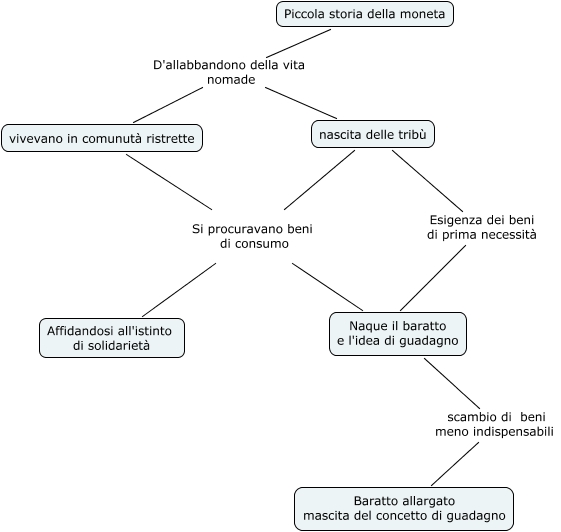 Questa Cmap, creata con IHMC CmapTools, contiene informazioni relative a: storia moneta 1 Parisi-salvati, nascita delle tribù Esigenza dei beni di prima necessità Naque il baratto e l'idea di guadagno, nascita delle tribù Si procuravano beni di consumo Naque il baratto e l'idea di guadagno, vivevano in comunutà ristrette Si procuravano beni di consumo Naque il baratto e l'idea di guadagno, Naque il baratto e l'idea di guadagno scambio di beni meno indispensabili Baratto allargato mascita del concetto di guadagno, Piccola storia della moneta D'allabbandono della vita nomade vivevano in comunutà ristrette, vivevano in comunutà ristrette Si procuravano beni di consumo Affidandosi all'istinto di solidarietà, nascita delle tribù Si procuravano beni di consumo Affidandosi all'istinto di solidarietà, Piccola storia della moneta D'allabbandono della vita nomade nascita delle tribù