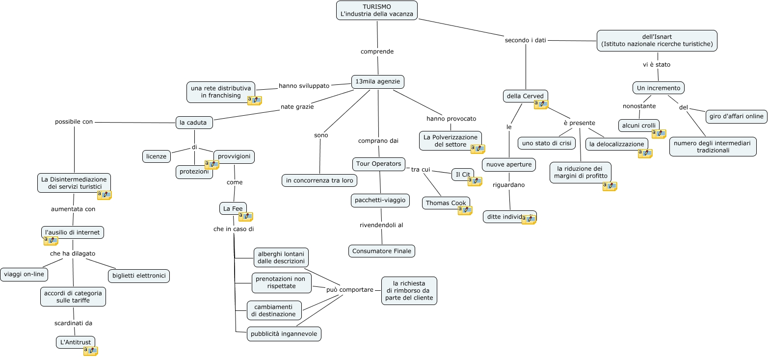 Questa Cmap, creata con IHMC CmapTools, contiene informazioni relative a: turismo industria delle vacanze, TURISMO L'industria della vacanza comprende 13mila agenzie, della Cerved le nuove aperture, 13mila agenzie comprano dai Tour Operators, La Fee che in caso di alberghi lontani dalle descrizioni, nuove aperture riguardano ditte individuali, accordi di categoria sulle tariffe scardinati da L'Antitrust, la caduta di protezioni, l'ausilio di internet che ha dilagato viaggi on-line, la caduta di licenze, pacchetti-viaggio rivendendoli al Consumatore Finale, 13mila agenzie sono in concorrenza tra loro, provvigioni come La Fee, l'ausilio di internet che ha dilagato biglietti elettronici, Un incremento del giro d'affari online, alberghi lontani dalle descrizioni può comportare pubblicità ingannevole, La Fee che in caso di cambiamenti di destinazione, TURISMO L'industria della vacanza secondo i dati della Cerved, alberghi lontani dalle descrizioni può comportare la richiesta di rimborso da parte del cliente, la caduta possibile con La Disintermediazione dei servizi turistici, La Fee che in caso di prenotazioni non rispettate