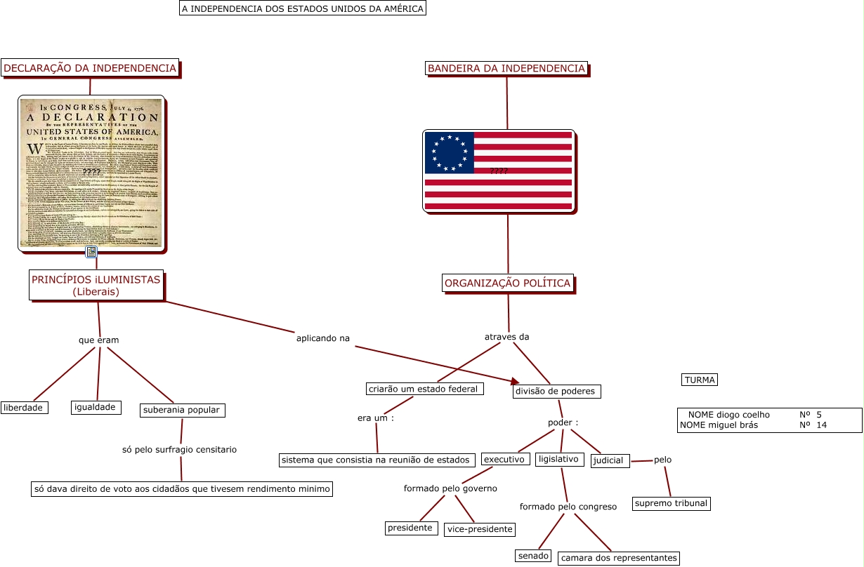 Esse mapa conceitual, produzido no IHMC CmapTools, tem a informação relacionada a: INDEPENDENCIA_AMERICANA, judicial pelo supremo tribunal, PRINCÍPIOS iLUMINISTAS (Liberais) aplicando na divisão de poderes, PRINCÍPIOS iLUMINISTAS (Liberais) que eram liberdade, executivo formado pelo governo vice-presidente, executivo formado pelo governo presidente, ligislativo formado pelo congreso camara dos representantes, PRINCÍPIOS iLUMINISTAS (Liberais) que eram suberania popular, ORGANIZAÇÃO POLÍTICA atraves da criarão um estado federal, PRINCÍPIOS iLUMINISTAS (Liberais) que eram igualdade, ligislativo formado pelo congreso senado, ???? ???? ORGANIZAÇÃO POLÍTICA, suberania popular só pelo surfragio censitario só dava direito de voto aos cidadãos que tivesem rendimento minimo, divisão de poderes poder : executivo, DECLARAÇÃO DA INDEPENDENCIA ???? ????, criarão um estado federal era um : sistema que consistia na reunião de estados, ???? ???? PRINCÍPIOS iLUMINISTAS (Liberais), divisão de poderes poder : judicial, divisão de poderes poder : ligislativo, ORGANIZAÇÃO POLÍTICA atraves da divisão de poderes, BANDEIRA DA INDEPENDENCIA ???? ????