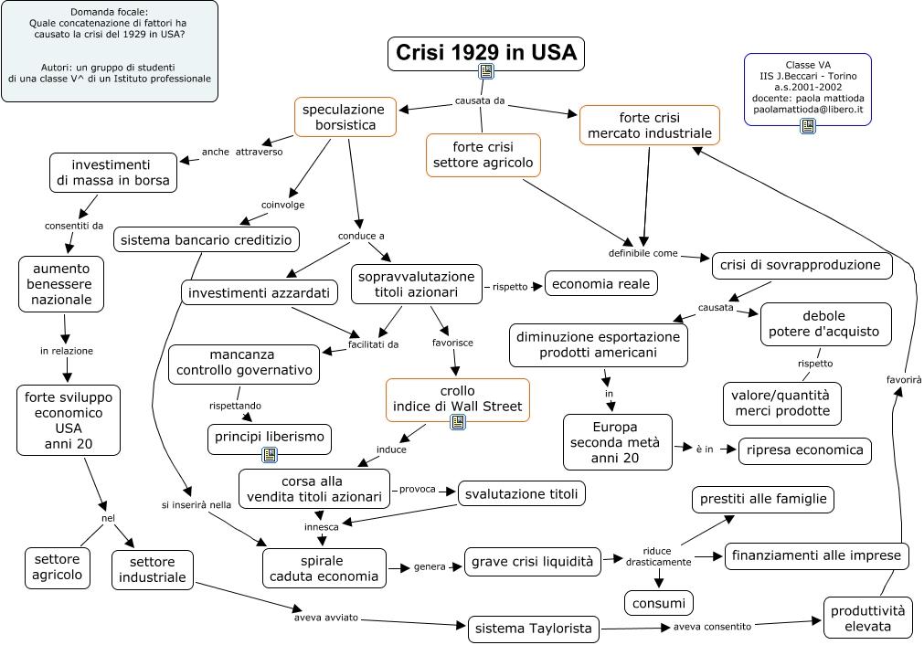 Questa Cmap, creata con IHMC CmapTools, contiene informazioni relative a: crisi economica 1929-IPC Beccari -Torino-classe II S, grave crisi liquidità riduce drasticamente finanziamenti alle imprese, settore industriale aveva avviato sistema Taylorista, diminuzione esportazione prodotti americani in Europa seconda metà anni 20, Crisi 1929 in USA causata da speculazione borsistica, investimenti azzardati facilitati da mancanza controllo governativo, produttività elevata favorirà forte crisi mercato industriale, sopravvalutazione titoli azionari rispetto economia reale, speculazione borsistica anche attraverso investimenti di massa in borsa, mancanza controllo governativo rispettando principi liberismo, forte crisi mercato industriale definibile come crisi di sovrapproduzione, forte crisi mercato industriale definibile come crisi di sovrapproduzione, speculazione borsistica conduce a sopravvalutazione titoli azionari, spirale caduta economia genera grave crisi liquidità, forte sviluppo economico USA anni 20 nel settore industriale, speculazione borsistica coinvolge sistema bancario creditizio, Crisi 1929 in USA causata da forte crisi mercato industriale, corsa alla vendita titoli azionari innesca spirale caduta economia, crisi di sovrapproduzione causata debole potere d'acquisto, aumento benessere nazionale in relazione forte sviluppo economico USA anni 20, sistema Taylorista aveva consentito produttività elevata