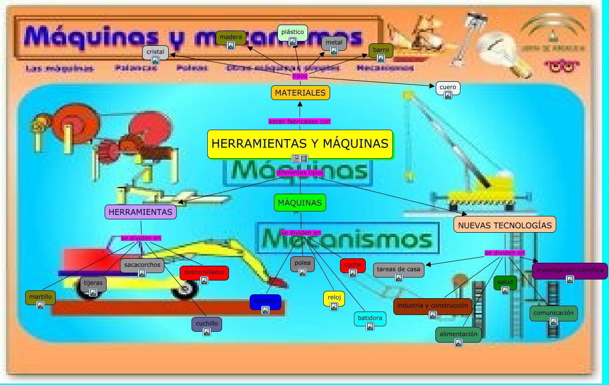 Este Cmap, tiene información relacionada con: MAPA CONCEPTUAL HERRAMIENTAS Y MAQUINAS, MÁQUINAS se dividen en batidora, HERRAMIENTAS se dividen en sacacorchos, HERRAMIENTAS Y MÁQUINAS diferentes tipos NUEVAS TECNOLOGÍAS, MATERIALES tipos plástico, MÁQUINAS se dividen en reloj, NUEVAS TECNOLOGÍAS se dividen en tareas de casa, HERRAMIENTAS se dividen en destornillador, MATERIALES tipos cristal, HERRAMIENTAS Y MÁQUINAS diferentes tipos MÁQUINAS, MATERIALES tipos metal, NUEVAS TECNOLOGÍAS se dividen en comunicación, MÁQUINAS se dividen en coche, MATERIALES tipos madera, HERRAMIENTAS se dividen en martillo, HERRAMIENTAS se dividen en tijeras, NUEVAS TECNOLOGÍAS se dividen en investigación científica, HERRAMIENTAS Y MÁQUINAS diferentes tipos HERRAMIENTAS, HERRAMIENTAS se dividen en cuchillo, MÁQUINAS se dividen en polea, NUEVAS TECNOLOGÍAS se dividen en alimentación