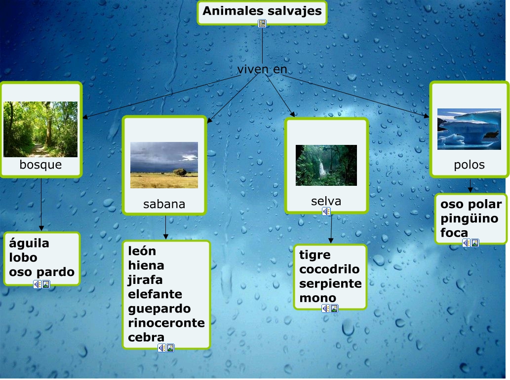 Este Cmap, tiene información relacionada con: mapa conceptual de animales salvajes, Animales salvajes viven en selva, Animales salvajes viven en bosque, Animales salvajes viven en sabana, selva ???? tigre cocodrilo serpiente mono, Animales salvajes viven en polos, polos ???? oso polar pingüino foca, bosque ???? águila lobo oso pardo, sabana ???? león hiena jirafa elefante guepardo rinoceronte cebra