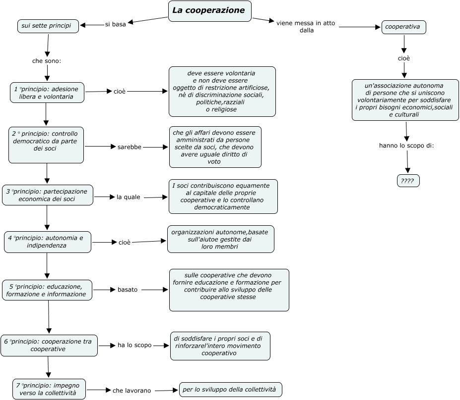 Questa Cmap, creata con IHMC CmapTools, contiene informazioni relative a: Le cooperative Pepe E Arnese 3bl, 6°principio: cooperazione tra cooperative ???? 7°principio: impegno verso la collettività, 1°principio: adesione libera e volontaria cioè deve essere volontaria e non deve essere oggetto di restrizione artificiose, nè di discriminazione sociali, politiche,razziali o religiose, 6°principio: cooperazione tra cooperative ha lo scopo di soddisfare i propri soci e di rinforzarel'intero movimento cooperativo, 4°principio: autonomia e indipendenza ???? 5°principio: educazione, formazione e informazione, 5°principio: educazione, formazione e informazione ???? 6°principio: cooperazione tra cooperative, 3°principio: partecipazione economica dei soci la quale I soci contribuiscono equamente al capitale delle proprie cooperative e lo controllano democraticamente, La cooperazione viene messa in atto dalla cooperativa, 2° principio: controllo democratico da parte dei soci sarebbe che gli affari devono essere amministrati da persone scelte da soci, che devono avere uguale diritto di voto, La cooperazione si basa sui sette principi, 3°principio: partecipazione economica dei soci ???? 4°principio: autonomia e indipendenza, 2° principio: controllo democratico da parte dei soci ???? 3°principio: partecipazione economica dei soci, 1°principio: adesione libera e volontaria ???? 2° principio: controllo democratico da parte dei soci, 4°principio: autonomia e indipendenza cioè organizzazioni autonome,basate sull'aiutoe gestite dai loro membri, un'associazione autonoma di persone che si uniscono volontariamente per soddisfare i propri bisogni economici,sociali e culturali hanno lo scopo di: ????, 5°principio: educazione, formazione e informazione basato sulle cooperative che devono fornire educazione e formazione per contribuire allo sviluppo delle cooperative stesse, 7°principio: impegno verso la collettività che lavorano per lo sviluppo della collettività, cooperativa cioè un'associazione autonoma di persone che si uniscono volontariamente per soddisfare i propri bisogni economici,sociali e culturali, sui sette principi che sono: 1°principio: adesione libera e volontaria