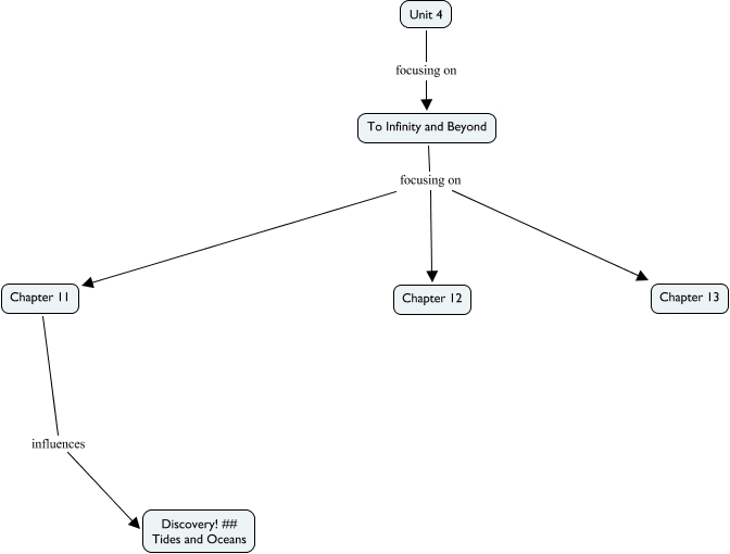 This Concept Map, created with IHMC CmapTools, has information related to: Unit 4 - To Infinity and Beyond, Chapter 11 influences Discovery! ## Tides and Oceans, To Infinity and Beyond focusing on Chapter 11, To Infinity and Beyond focusing on Chapter 12, Unit 4 focusing on To Infinity and Beyond, To Infinity and Beyond focusing on Chapter 13