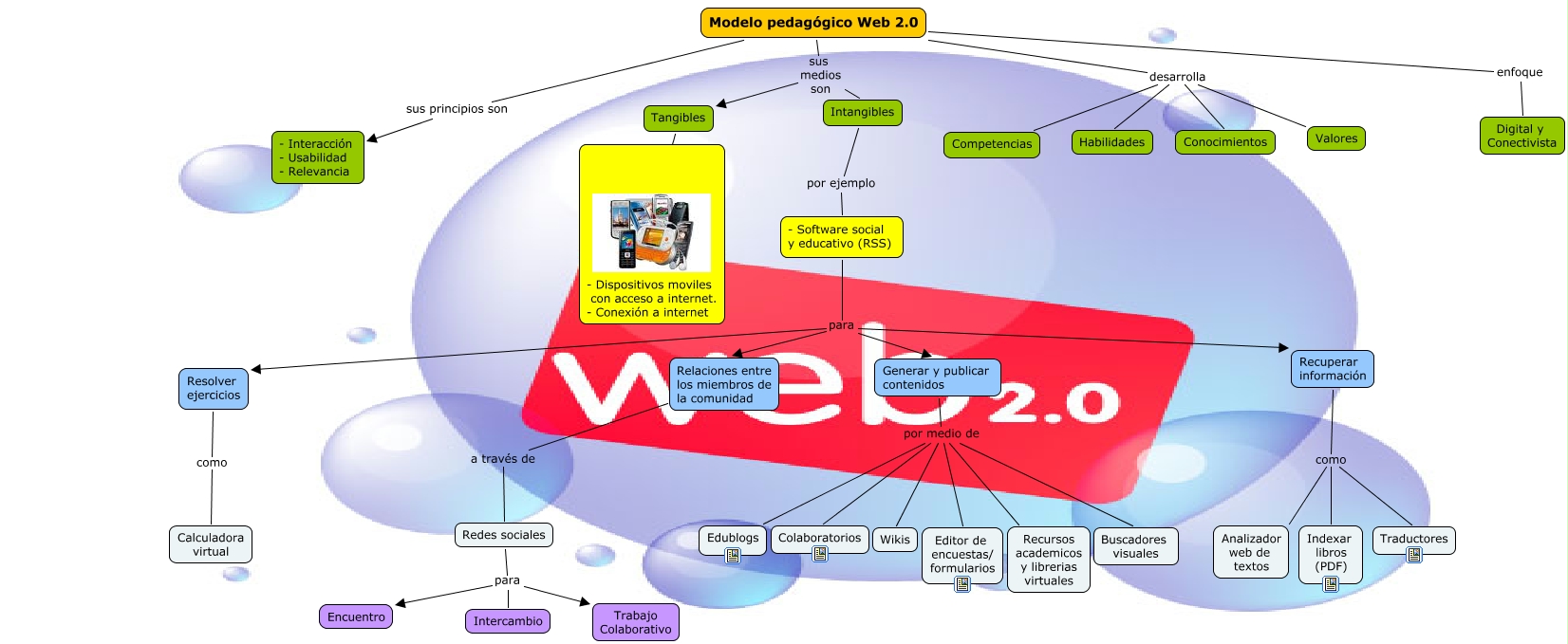 Este Cmap, tiene información relacionada con: Modelo Pedagogico Web 2.0, Generar y publicar contenidos por medio de Edublogs, Generar y publicar contenidos por medio de Wikis, Resolver ejercicios como Calculadora virtual, Generar y publicar contenidos por medio de Editor de encuestas/ formularios, - Software social y educativo (RSS) para Recuperar información, Redes sociales para Trabajo Colaborativo, Recuperar información como Analizador web de textos, - Software social y educativo (RSS) para Relaciones entre los miembros de la comunidad, Intangibles por ejemplo - Software social y educativo (RSS), Modelo pedagógico Web 2.0 sus medios son Intangibles, Relaciones entre los miembros de la comunidad a través de Redes sociales, Recuperar información como Indexar libros (PDF), Modelo pedagógico Web 2.0 sus medios son Tangibles, Tangibles como - Dispositivos moviles con acceso a internet. - Conexión a internet, Modelo pedagógico Web 2.0 desarrolla Habilidades, Modelo pedagógico Web 2.0 enfoque Digital y Conectivista, - Software social y educativo (RSS) para Generar y publicar contenidos, Modelo pedagógico Web 2.0 desarrolla Competencias, Modelo pedagógico Web 2.0 desarrolla Conocimientos, Redes sociales para Encuentro