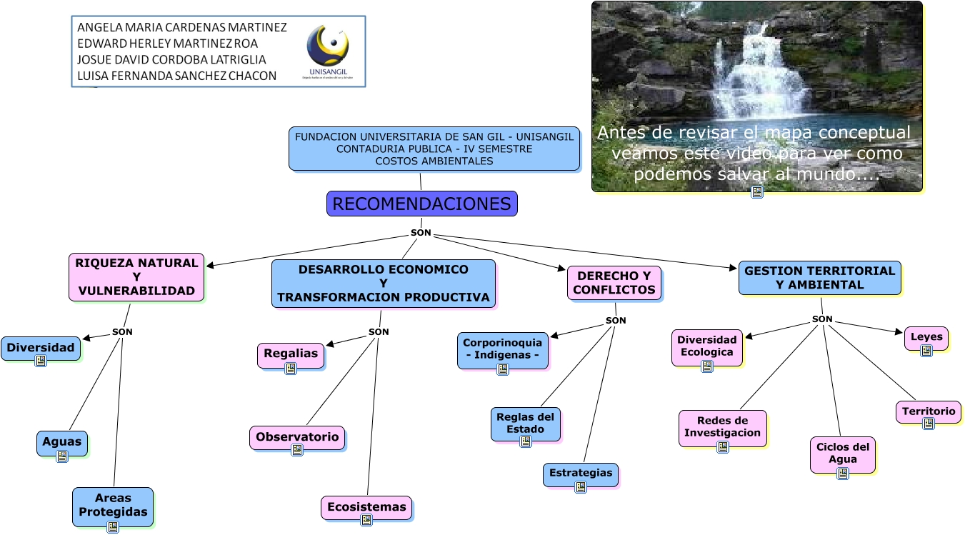 Este Cmap, tiene información relacionada con: angela martines,edward martinez,josue cordoba, luisa sanchez, GESTION TERRITORIAL Y AMBIENTAL SON Leyes, RECOMENDACIONES SON RIQUEZA NATURAL Y VULNERABILIDAD, RIQUEZA NATURAL Y VULNERABILIDAD SON Diversidad, GESTION TERRITORIAL Y AMBIENTAL SON Ciclos del Agua, RIQUEZA NATURAL Y VULNERABILIDAD SON Areas Protegidas, DERECHO Y CONFLICTOS SON Estrategias, DERECHO Y CONFLICTOS SON Reglas del Estado, DERECHO Y CONFLICTOS SON Corporinoquia - Indigenas -, DESARROLLO ECONOMICO Y TRANSFORMACION PRODUCTIVA SON Regalias, RECOMENDACIONES SON DESARROLLO ECONOMICO Y TRANSFORMACION PRODUCTIVA, RECOMENDACIONES SON DERECHO Y CONFLICTOS, GESTION TERRITORIAL Y AMBIENTAL SON Redes de Investigacion, RECOMENDACIONES SON GESTION TERRITORIAL Y AMBIENTAL, DESARROLLO ECONOMICO Y TRANSFORMACION PRODUCTIVA SON Ecosistemas, GESTION TERRITORIAL Y AMBIENTAL SON Territorio, RIQUEZA NATURAL Y VULNERABILIDAD SON Aguas, GESTION TERRITORIAL Y AMBIENTAL SON Diversidad Ecologica, DESARROLLO ECONOMICO Y TRANSFORMACION PRODUCTIVA SON Observatorio, FUNDACION UNIVERSITARIA DE SAN GIL - UNISANGIL CONTADURIA PUBLICA - IV SEMESTRE COSTOS AMBIENTALES ???? RECOMENDACIONES